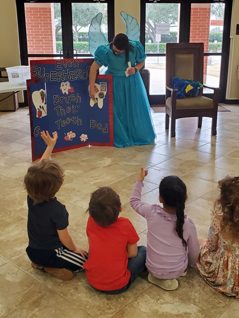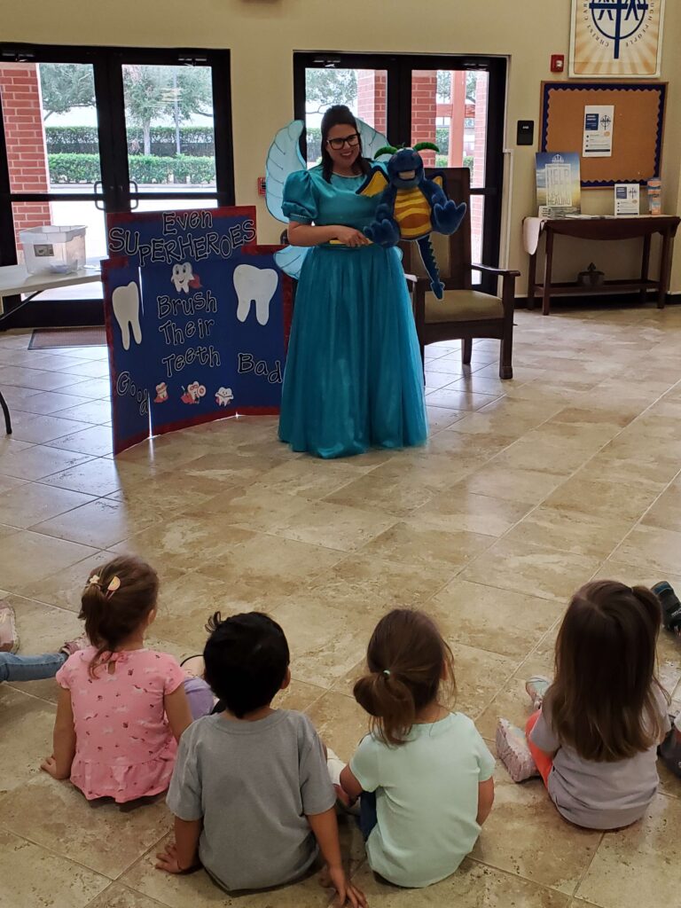Every year we have a special visit from Sparkles the Tooth Fairy and Dizzy, her puppet friend. We learn about brushing our teeth and choosing healthy foods for our teeth.